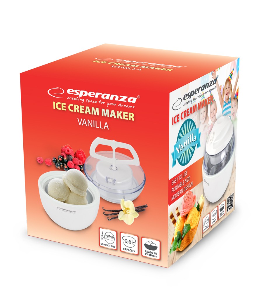 | description | Maszynka do lodów VANILLA Maszynka do lodów Esperanza VANILLA to wymarzone rozwiązanie dla miłośników mrożonych deserów.Za pomocą jednego przycisku możesz w bardzo prosty sposób przyrządzić pyszne domowe lody, sorbety, albo mroż |