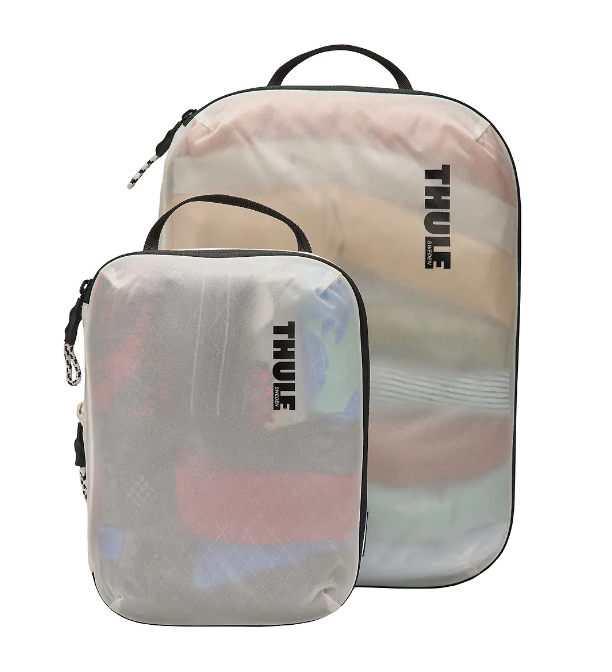 Thule Compression Cube Set (3204860) small/medium white Description This set of durable, small and medium packing cubes will help maximize packing space and keep you organized. Features Includes one small and one medium Thule Compression Packing Cube Durable compression zipper eliminates excess air between clothes to maximize packing space Semitransparent fabric to see what is inside while still keeping belongings discreet Set sized to perfectly fit most carry-on luggage with some room left over for other things Small size is ideal for socks, underwear and shirts while medium size is great for jeans, leggings and shirts Cube opens wide for easy packing Durable, bluesign ® approved 100D ripstop nylon material that minimizes impact on the environment, is water-repellent and will withstand years of use Webbing handle allows you to easily grab and hang the cube while traveling Made with premium YKK zippers for added durability Product dimensions: Thule Compression Packing Cube Small - Expanded: 25 x 18 x 10 cm; Compressed: 25 x 18 x 3 cm Thule Compression Packing Cube Medium - Expanded: 36 x 25 x 10 cm; Compressed: 36 x 25 x 3 cm Technical specifications Color: White Material: Nylon Model number: 3204860