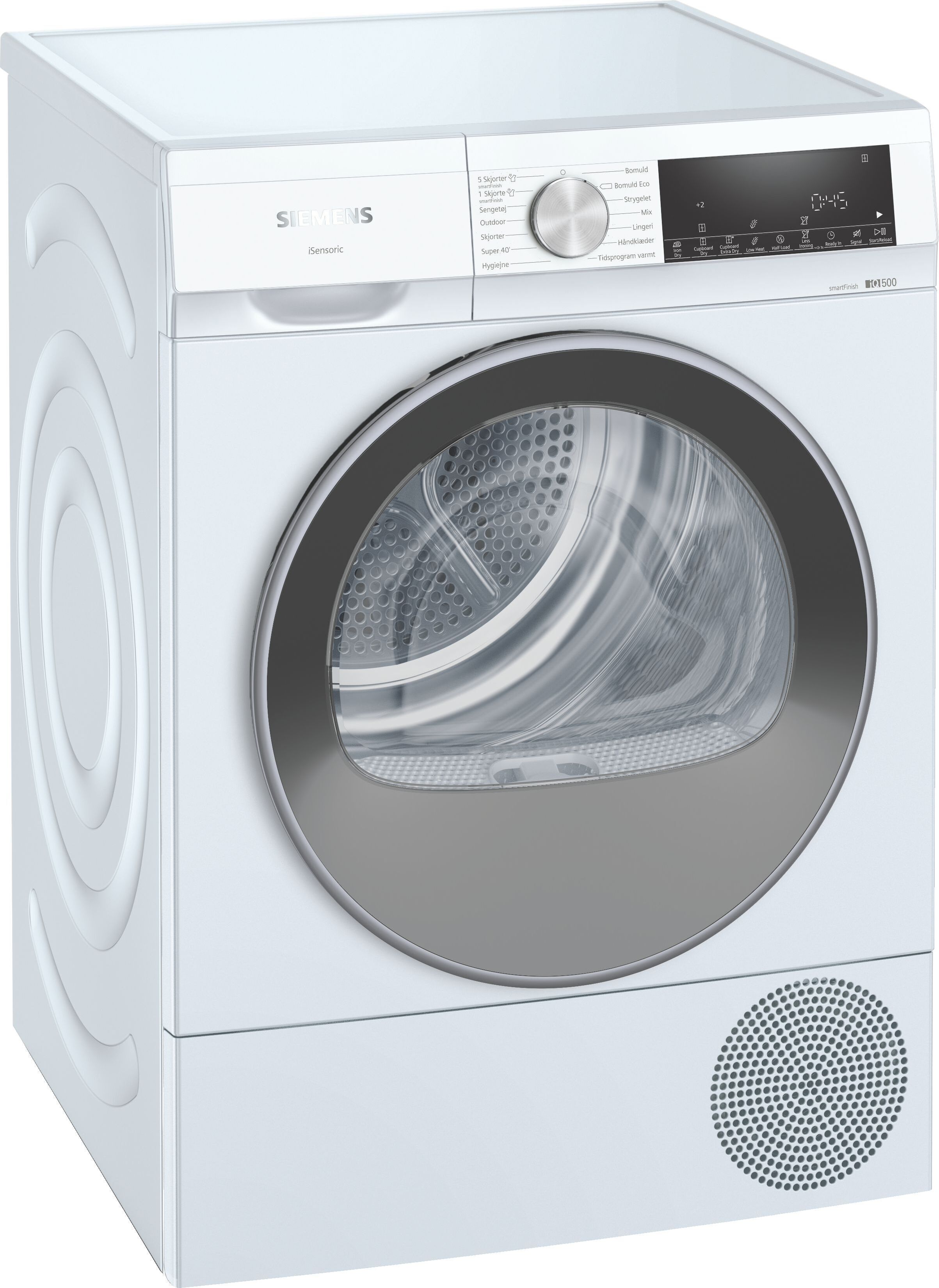 The Siemens WQ33G2CBDN iQ500 dryer makes laundry a whole lot smoother. It's packed with smart features that make drying not only efficient, but also gentle and respectful of your clothes' properties. autoDry sensor technology is your clothes' best friend. It continuously measures the moisture content of your laundry and stops drying just when the desired drying level (ironing, cabinet or extra dry) is reached. This prevents clothes from over-drying and shrinking and saves energy. The special Outdoor programme gently dries technical outdoor and sports clothing at low temperatures, while the bedding programme's bi-directional rotating drum prevents large sheets and duvet covers from tangling into a myty. smartFinish heat function finishes clean laundry by smoothing out wrinkles and significantly reducing the need for ironing.