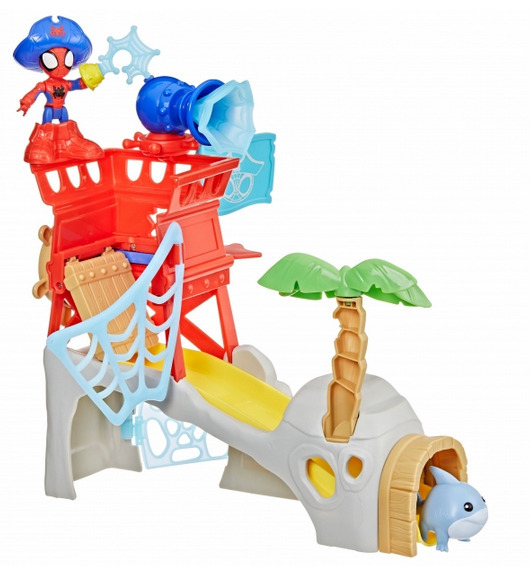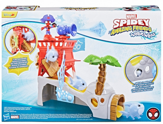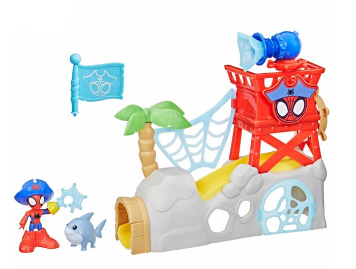 Sukella hurjapäisen toiminnan ja seikkailujen merirosvomaailmaan Spideyn saari -leikkisetin avulla! Leikkisettiin kuuluu nivelletty 7,6 cm kokoinen Spidey-hahmo sekä Jeff Landshark -haihahmo ja siinä on muun muassa ansaluukku, joka johtaa liukumäkeen sekä vangitseva luola-ansa ja paljon muuta. Muuta Spidey Merirosvo-Spideyksi hahmoon kiinnitettävien merirosvohatun, saappaiden ja koukun avulla.