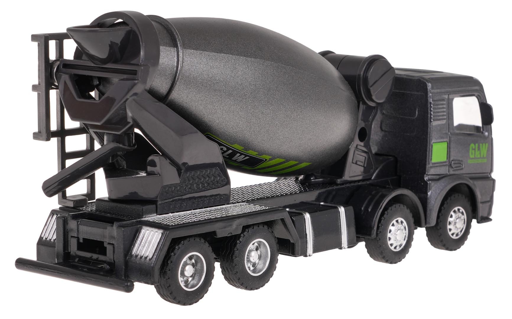 Металлический резервуар выполнен в масштабе 1:55 для детей от 3 лет. Прочная конструкция гарантирует долговечность и надёжность, а привод позволяет резервуару плавно перемещаться вперёд и назад. Функции резервуара: - подходит для детей старше 3 лет, - масштаб 1:55, - металлическая конструкция, - реалистичный внешний вид, - резиновые шины, - привод на два колеса, - плавное движение вперёд и назад, - вращающаяся бетономешалка.