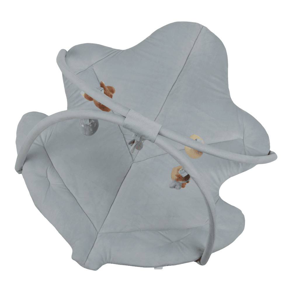Jokainen päivä on seikkailu tällä lehden muotoisella leikkimatolla. Pehmeän sinisessä sävyssä on kaksi vakosamettista kaarta ja viisi erilaista roikkuvaa pehmeää lelua. Pieni kettu, viisas pöllö, lehti, keltainen ja sininen sieni auttavat kehittämään aisteja sekä käden että silmän koordinaatiota. Leikkimaton koko on 90x90cm ja siinä on käytetty kierrätettyä GRS-materiaalia.