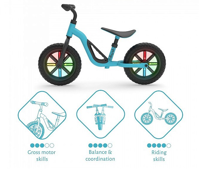 CHILLAFISH CPCH02SKY — это беговел Charlie Glow, предназначенный для детей от 18 до 48 месяцев (рост от 80 до 105 см). Он сочетает в себе легкость, безопасность и увлекательный дизайн, способствуя развитию баланса и координации у малышей. Основные характеристики: Светящиеся колеса: при движении колеса загораются, обеспечивая дополнительную видимость и радость от катания. Для работы подсветки батарейки не требуются — она активируется за счет движения. Легкий вес: благодаря легкой конструкции ребенок легко управляет беговелом, а встроенная ручка для переноски облегчает задачу родителям. Регулируемые элементы: сиденье регулируется по высоте от 28 до 37 см, а руль — от 48 до 51 см, что позволяет адаптировать беговел по мере роста ребенка. Безопасные колеса: 10-дюймовые колеса изготовлены из прочного материала, не требующего накачивания, что исключает риск проколов и обеспечивает комфортное катание. Эргономичное сиденье: специально разработанное сиденье обеспечивает комфорт даже при длительном использовании.