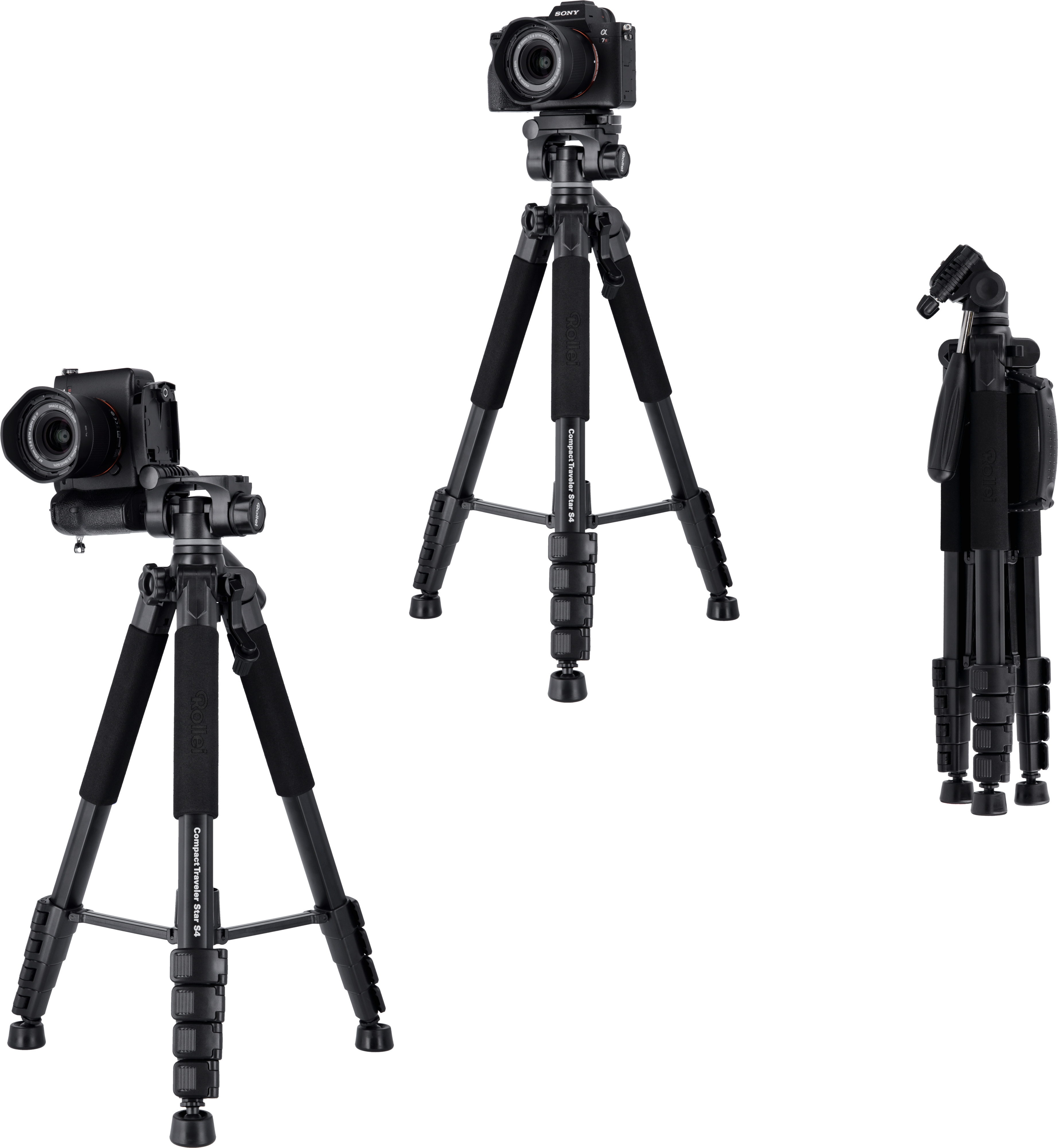 The compact size of the Compact Traveler Star S4, at just 51.5 cm when folded, makes it a great choice for travel. It comes with a carrying bag for easy transport and storage. Whether you're hiking, on the city streets or abroad, this tripod is always ready to support your shooting projects.