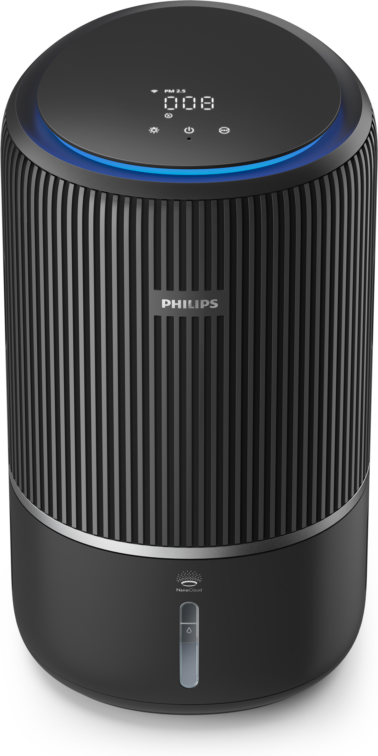 The device humidifies the air up to 650 ml/h, and automatically adjusts the humidity. NanoCloud technology produces pure water vapour that is so fine that bacteria do not stick to it. This technology provides up to 99.9% cleaner humidification compared to conventional ultrasonic humidifier modules, which do not have bacteria-preventing technology.