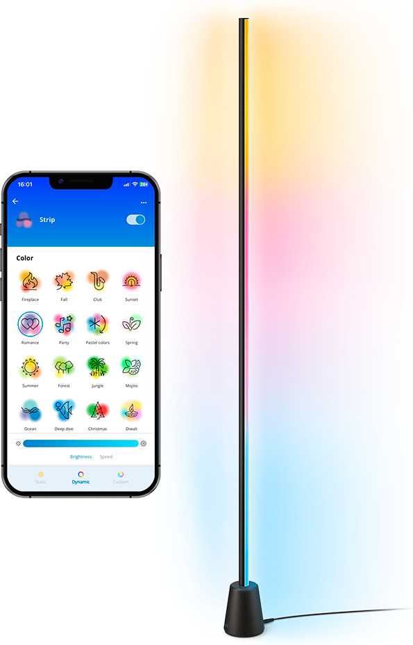 WiZ app lets you choose the lighting setting you want or create your own unique mood. Choose from millions of colours and different lighting settings to make every day special. Whether it's a romantic dinner or a relaxing time with friends, WiZ Gradient Floor Lamp is always ready to create the perfect mood.