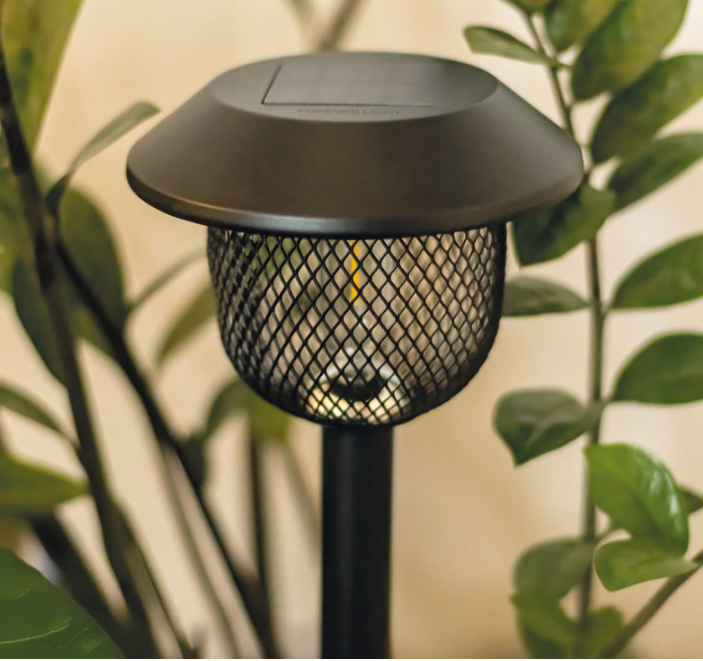 Светодиодный садовый светильник Forever Light SUNARI FLS-30 Solar со стальным столбом — черныйДекоративный уличный светодиодный светильник со встроенной солнечной панельюТеплый белый светодиодный светильник в виде нити накаливания (3000 К)Изготовлен из нержавеющей стали, АБС-пластика и стеклаВстроенный аккумулятор Ni-MH емкостью 800 мАчМонокристаллическая солнечная панель 5 В 100 мАДо 8 часов света после полной зарядкиАвтоматический датчик включения/выключения сумерекУстойчив к атмосферным воздействиям (IP44)Рабочая температура: от -10 °C до +45 °CРазмеры продукта: 0,126 × 0,126 × 0,62 мВес нетто: ~0,245 кгВес брутто: ~0,334 кгРазмеры упаковки: прибл. 0,13 × 0,13 × 0,21 м