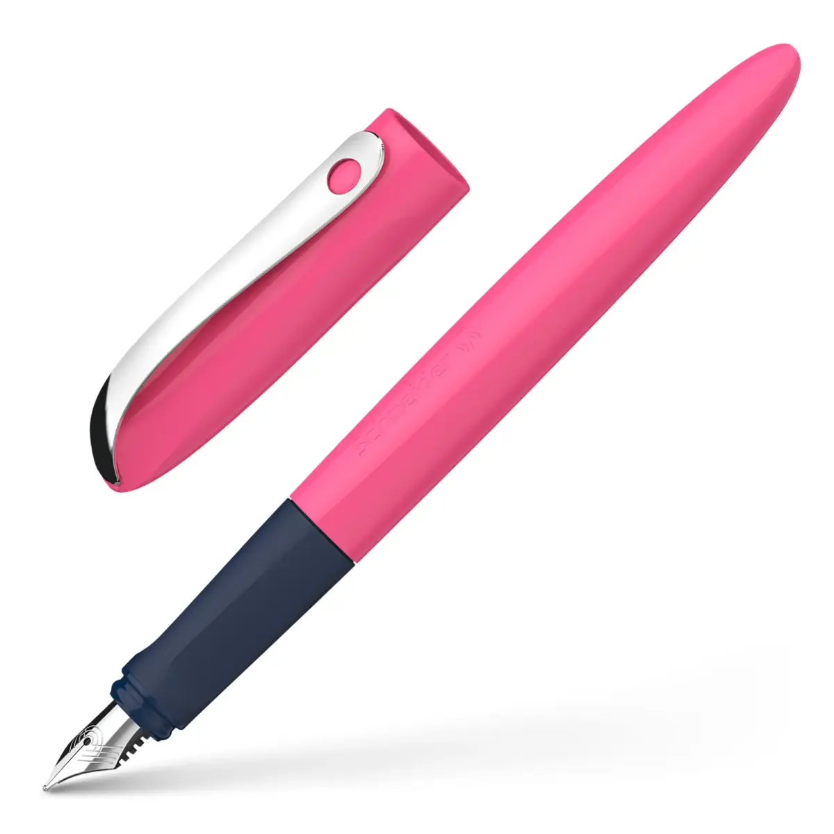 •Tintes pildspalva pielāgota iesācējiem, spilgtās krāsās ar spiedienizturīgu nerūsējošā tērauda uzgali un irīdija spalvas galu A •Ergonomiski gumijots rokturis paredzēts pareizai pozicionēšanai un novērš spiediena punktus • Stingrs metāla klipsis. •Piemērots standarta tintes kārtridžiem •Vienlīdz piemērots labročiem un kreiļiem. • Ražo neitrālu CO₂