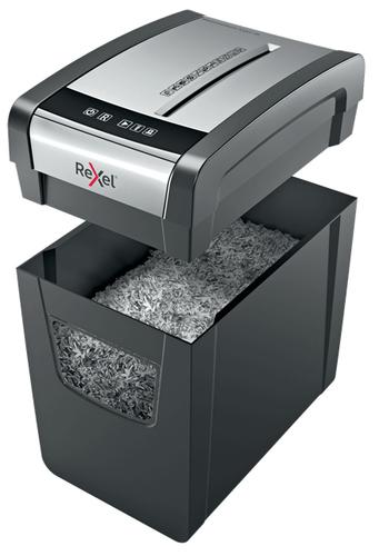 The power to shred more! Rexel Momentum X312-SL Slimline Paper Shredder shreds up to 12 sheets in one go, with a 6 minute continuous run time, and a slimmer design making it ideal for home use. The Slim X312-SL comes with anti jam technology to guarantee uninterrupted shredding. P3 Cross Cut 5x42mm pieces. Quiet, with simple, intuitive, touch control buttons for easy operation and a generous 23L bin capacity (200 A4 sheets)Rexel Momentum X312-SL Slimline Cross Cut Paper Shredder P4. Shredding type: Particle-cut shredding, Shredding size: 5 x 42 mm, Basket volume: 23 L. Power consumption (typical): 280 W. Width: 255 mm, Depth: 370 mm, Height: 375 mm. Warranty period: 2 year(s)