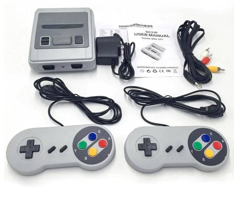 Mini SFC Retro Консоль с 620 встроенных ретро 8-битных игр и двумя джойстиками в комплекте - предназначена для молодых и старых энтузиастов. На нем вы найдете свои любимые платформенные игры, аркады, головоломки и многие другие. - консоль оснащена двумя джойстиками, благодаря которым большинство из гигантского выбора игр можно играть в кооперативном или "versus" режиме.- идеальный подарок как для ребенка, так и для человека который помнит времена расцвета 8-битных компьютерных игр. Консоль содержит 620 предустановленных ретро-игр: - Super Mario- Contra- Arkanoid- Pacman- Robocop- Donkey Kong- Mortal Kombat- Bomber Man- Popeye- Turtles- Tetris- Chip & Dale- F1, Футбол, Теннис, Бейсбол и многое другое! Разъемы консоли: Разъем для подключения геймпада: 2xИндикатор состояния работы консоли: естьРазъем видео: AV-Out (RCA)Порт для питания: microUSB В комплект входит: - Консоль SFC620- x2 проводных джойстика- Кабель AV-OUT (Component RCA)- Адаптер переменного тока с разъемом microUSB- Руководство пользователя с полным списком игр