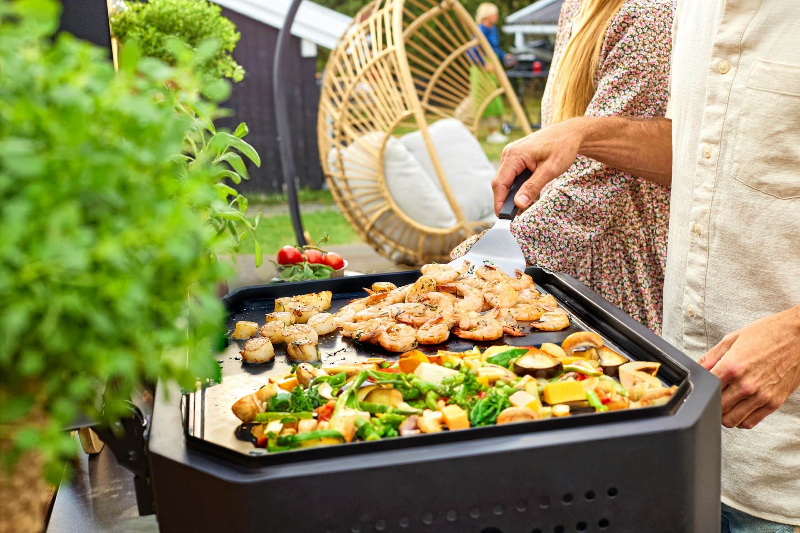 Enjoy an exceptional outdoor cooking experience with a stunning large plancha. This plancha features an abrasion-resistant enameled cast iron grill plate - the smooth coating allows you to grill shrimp, burgers, bacon, eggs, fish and other delicate foods. You can experiment with different ingredients to create a variety of tasty meals that will impress your guests and satisfy your taste buds.