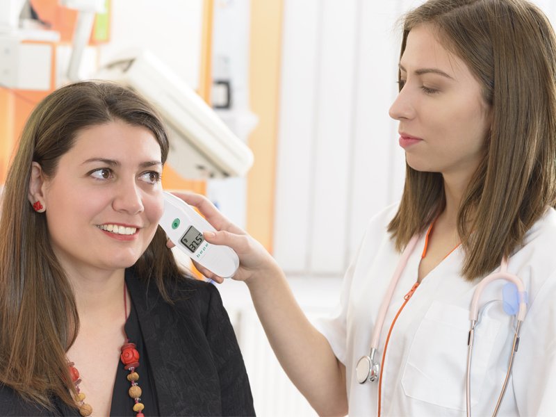 Идеально подходит для простого измерения температуры тела, вставляя ее в ухо. Благодаря инфракрасному излучению этот новый термометр имеет измеренный диапазон температур от 32,0 ° C до 43,0 ° C, и можно выбирать между ° C и ºF. Со звуковым сигналом, когда устройство готово к использованию и для температур> 37,8 ° C. ЖК-дисплей, 10 блоков памяти . В комплектации 15 пластиковых крышек сенсорных головок.